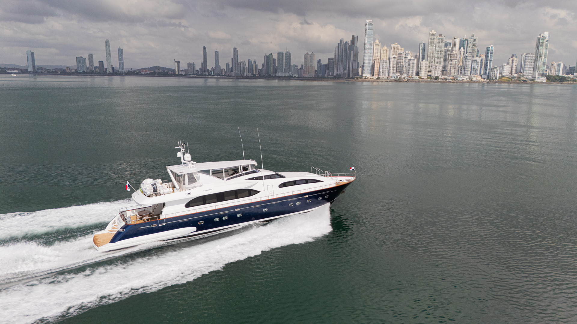El Yate Falcon 102’ es sinónimo de lujo y confort en Panamá, ideal para grupos de hasta 35 pasajeros que buscan vivir una experiencia inolvidable en el mar.