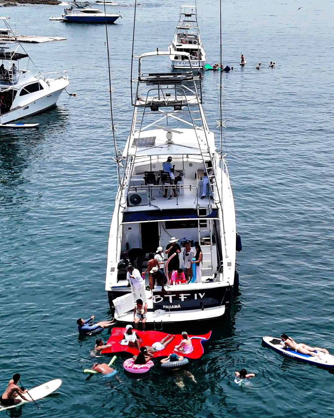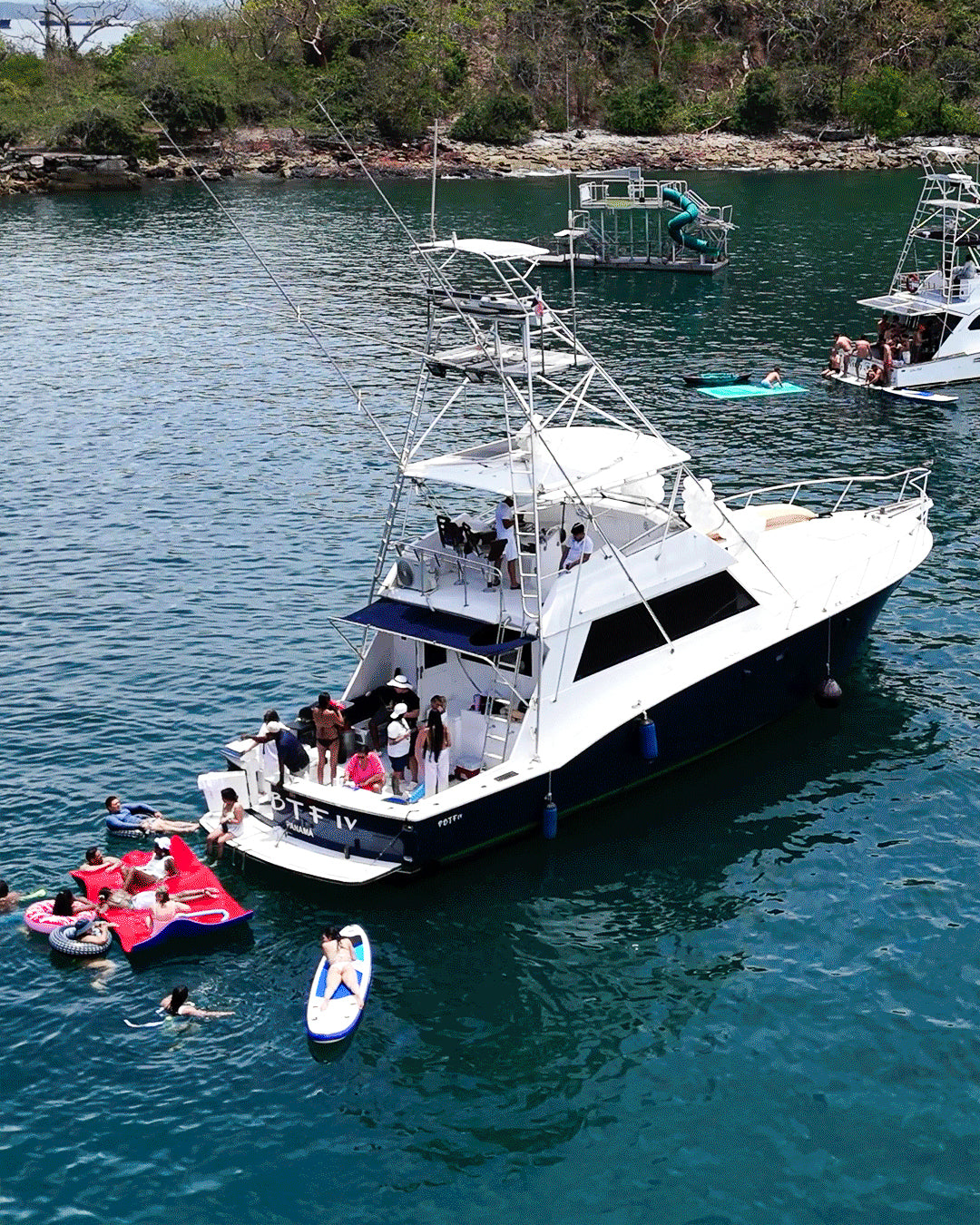Viví un día inolvidable en Isla Taboga con el Hatteras 55’, un yate amplio, cómodo y diseñado para compartir momentos memorables con amigos, familia o eventos especiales.