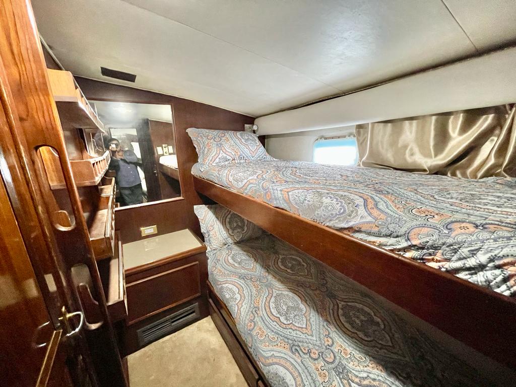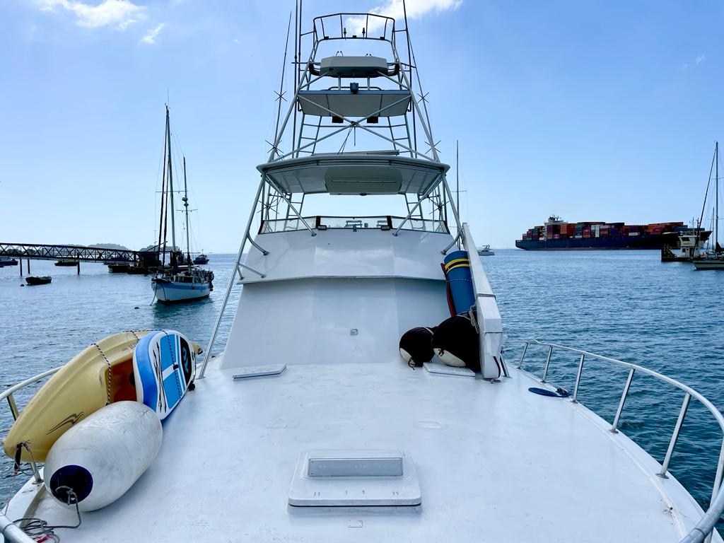 El Hatteras 55’ es un lujoso yate ideal para grupos grandes que buscan disfrutar de una experiencia única en el mar de Panamá. Con capacidad para 25 personas y opción de hasta 5 pasajeros extra con costo adicional, este yate es perfecto para pasadías en Isla Taboga o recorridos personalizados por la bahía.